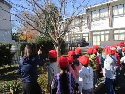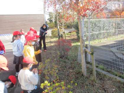 赤く色づいていたもみじの葉が少なくなったことやその葉が木の周りに落ちていることなど子供たちの気付きには驚かされるばかりでした。