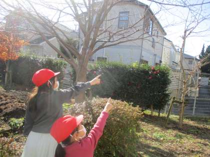 また、桜の木を見て「葉が無いから枯れてしまったのかなぁ?」と聞くと、「新しい芽が出ているから枯れてないよ!」と答える子供の観察力の高さにも驚きを隠せませんでした。