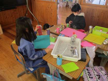 1年生と一緒に行うおもちゃ祭りに向けて、今日もやる気いっぱいで取り組む2年生。