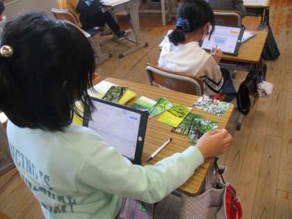 今までは、紙でまとめていましたが、端末を活用することにより、画像をデータ化しダウンロードすることにより大きさを自由に変えられたり、トリミングをして切り取ったりと、紙媒体で行うには大変なことが、簡単にできてしまいます。