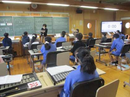 6年生の教科専科による音楽の授業風景です。