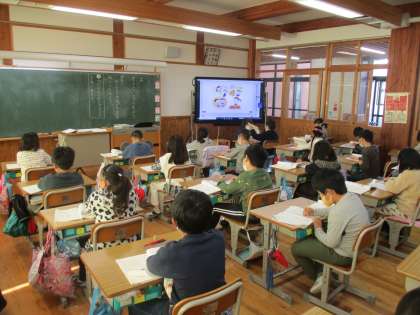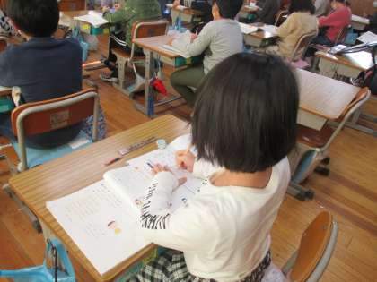 「『ありがとう』をつたえよう」の学習で、生活の中で身の回りの人に助けてもらったことや、してもらってうれしかったことを基に、「ありがとう」という気持ちを伝えたい人へ手紙を書いて、気持ちを伝える学習です。