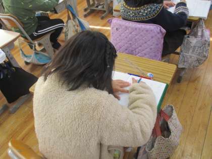 本時は、伝えたい人と出来事を思い出して、ノートにまとめています。