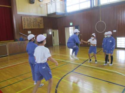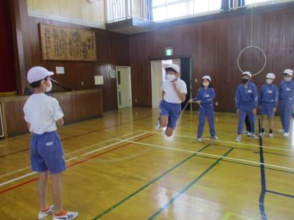 また、長なわで、抜け方を工夫したり、2人で同時に跳んでみたりと、様々な動きに積極的にチャレンジする4年生。