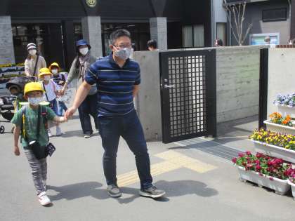 たくさんの保護者の方々にお迎えにご来校いただき、保護者と手をつなぎながら、家路をたどる1年生の姿が印象的でした。