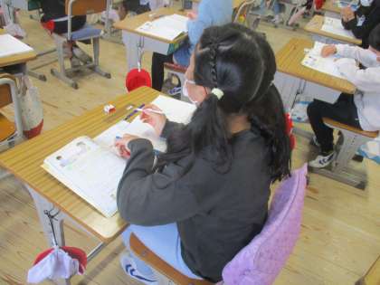 先生からの問題や質問に対し、一生懸命考える子供たち。