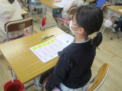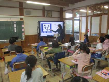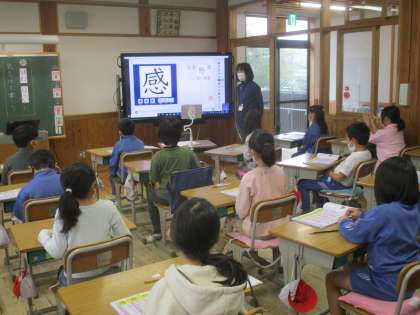 先生の説明を、姿勢を正して聴く姿に感動させられるとともに、めあてをしっかりと意識して進出漢字を学ぶ子供たちの姿がとても印相的でした。