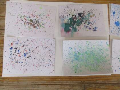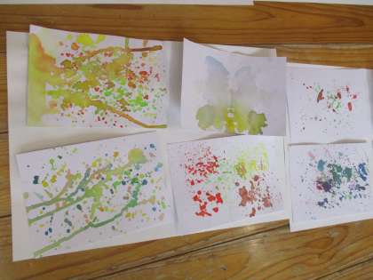 水彩絵の具の特長を活かしてつくった作品が並んでいます。