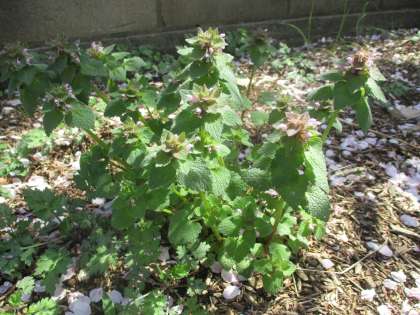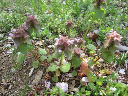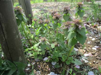 そんな土曜日に、守小の片隅で、さりげなく花を咲かせるヒメオドリコソウを見つけました。