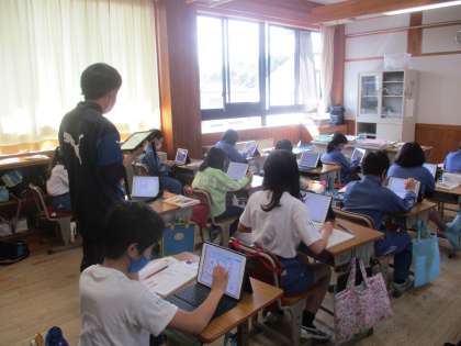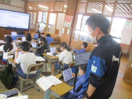 子供たちは、1人1台端末に向かって、課題解決を図っています。