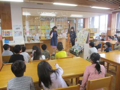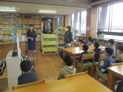 お話の後には、学校図書館のどこにどんな本があるのかを探したり、担任の先生や司書の先生に質問をしたりする姿もみられました。
