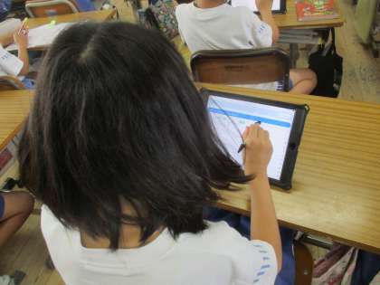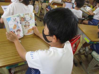 何をしているのかと思い、教室に入ってみると、1人1台端末でeライブラリを活用して学習を進めたり、自主学習ノートに自分の関心のある学習を進めたり、読書をしたりする姿がみられました。