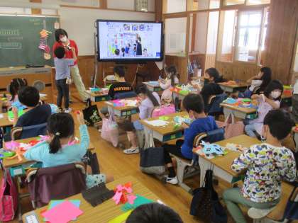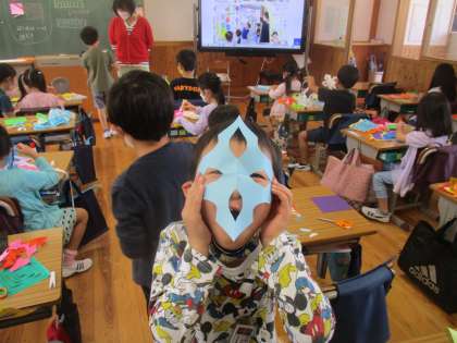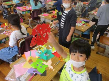 「先生みて!」と、世界にたった一つしか無い「チョッキン パッ」した折り紙をみせてくれる子供たちの姿が印象的でした。