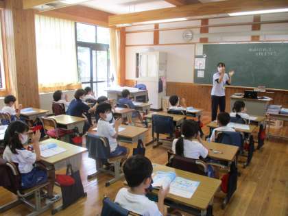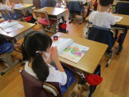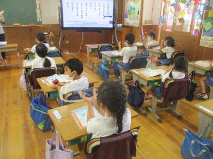1年生の教室の横を通ると、心地よいリズムを奏でるカスタネットの音色がきこえてきました。