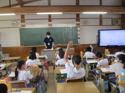 机上には付箋いっぱいの国語辞典が置かれ、叙述を基に、「できごと」と登場人物である「はりねずみの気持ち」に着目して、あらすじをまとめる子供たちの姿の姿が印象的でした。