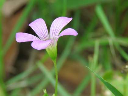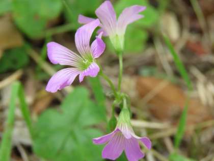 ムラサキカタバミは、江戸時代末に観賞目的で輸入されたものが各地で野生化して繁殖した帰化植物だそうです。