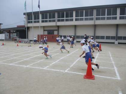 本時のめあては、「スタンディングスタートから、素早く走り始めよう」で、子供たちは、自らスタート位置を決め、8秒以内にゴールができるよう、スタートを意識して一生懸命走る姿が印象的でした。