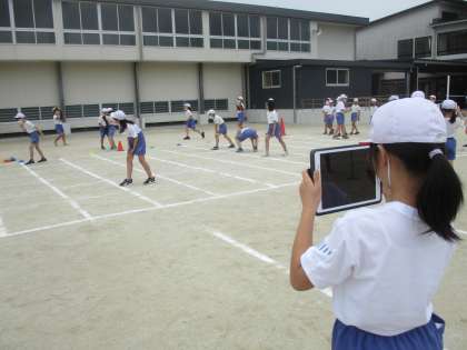 また、1人1台端末を使って、自分のスタートを友達に撮ってもらい、自分自身のパフォーマンスを評価し、フィードバックすることもできました。