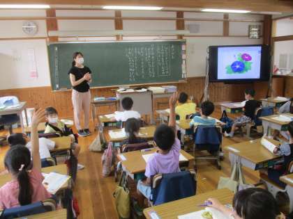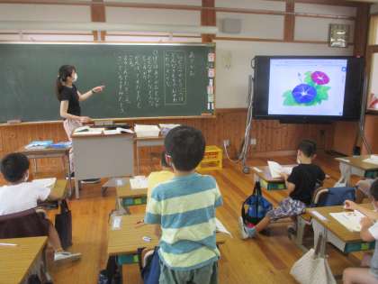 今、自分たちが大切に育てているアサガオから、本時のねらいにせまる1年生の姿が印象的でした。