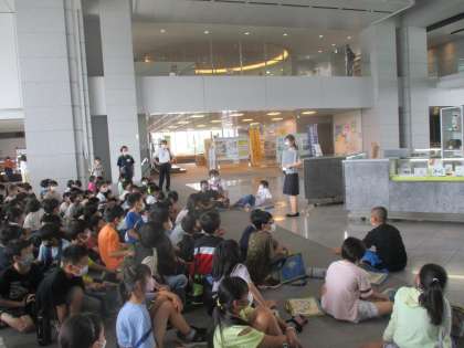 楽しい、そしてたくさんの「学び」があった3グループによる県庁の見学が終了、2階ロビーに集合です。