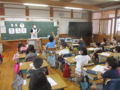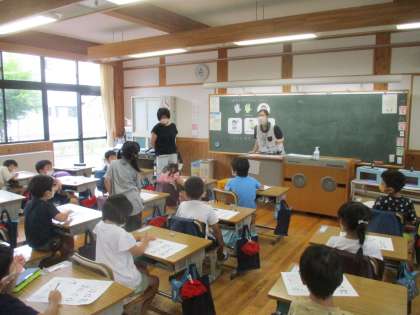 1年生の教室の横を通ると、養護教諭が教室に。