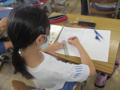 先生からの、「できるだけ測るところを少なくして、合同な三角形をかくにはどうしたらいいかな?」との問いかけに、より簡単に目的を達成しようと思考を巡らす子供たちの姿が印象的でした。