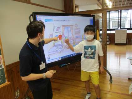 そして、ALTから英語で出された「捜し物が部屋のどこにあるか」のクエスチョンに対し、捜し物の場所を的確に回答する子供たち。