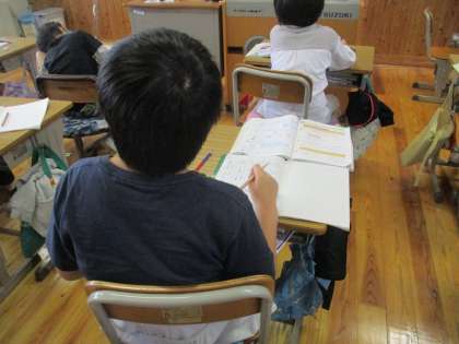 「1より少ない数の表し方を考えよう」を課題に展開されています。