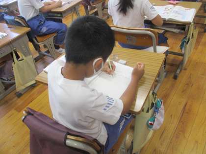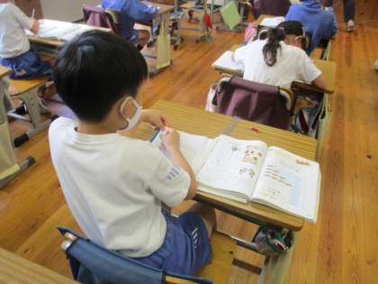 3の段の答えをたしかめる中で、3の段の九九は3つずつ増えていったり、かけられる数と書ける数について学んだりする子供たち。