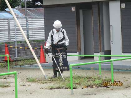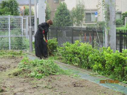 すっきりしない天候の中、グリーンモリヤさんにご来校いただき、除草作業を行っていただきました。