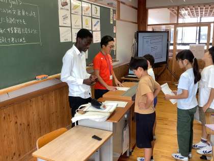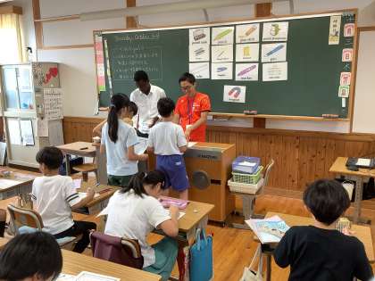 5年生は、外国語の学習を頑張っています。2人の先生と一緒に、笑を用いて、様々な会話表現に挑戦していました。