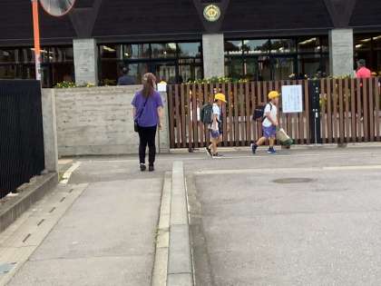 金曜日の下校は、子供たちのテンションが高く、トラブルが生じやすいものです。本日は、いじめ解消サポーターの先生が下校の様子を見守ってくださっています。いじめ解消サポーターの先生、ありがとうございました。