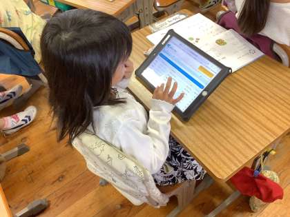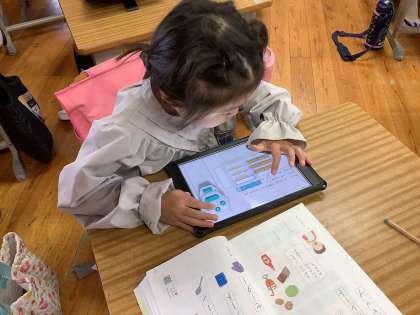1年生もタブレットを活用しながら、自らの学びを調整しながら学習に取り組んでいます。入学してから半年経ち、子供たちもすっかり学校生活に慣れたようです。