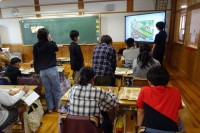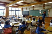 通学路の一部を変更する地区があります。みんなで、変更箇所を確認です。先生の話をし...