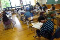 1時間目が国語科、2時間目が算数科の全国学力・学習状況調査テストを6年生が受けて...