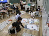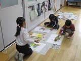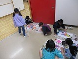周りの余白を布に絵の具を付けて、ポン ぽんと彩りを加えていきます。