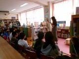 業間の休み時間に開かれた6年生初となる読み聞かせに、たくさんの子供たちが訪れました。