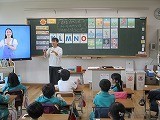 楽しい歌声が聞こえたので覗いてみると外国語活動です。