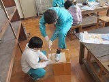 のこぎりで切り、釘やボンドで組み立てていきます。