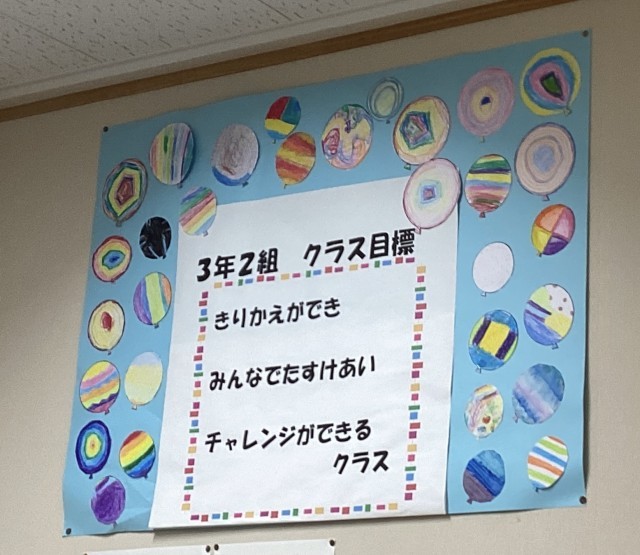を目標にしています。いいところを3年2組の先生に聞いたところ「元気にあいさつができてきりかえができるクラス」と言っていました。