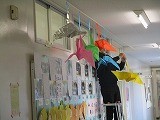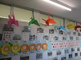 その思いを継続できるよう、集会で使用した大きな鶴を職員室前、各学級の行動宣言の上に吊るしてもらいました。