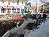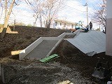 周囲をコンクリートで固めて、階段らしくなってきました。