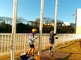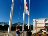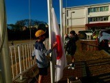 夏休み前は、ロープが絡まったり、旗が支柱とロープに挟まったりと、掲揚するまでに時間がかかっていましたが、