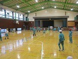 ボールを床にボールをバウンドさせながら、相手コートにボールを返していきます。
