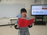 1年生、3年生、5年生の代表児童が、本年度頑張ったこと、次年度に頑張りたいことを発表しました。