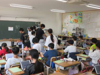 【中】iPadを活用して、体力テストの結果を入力しています。