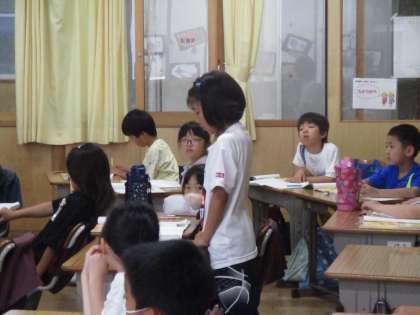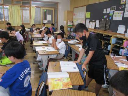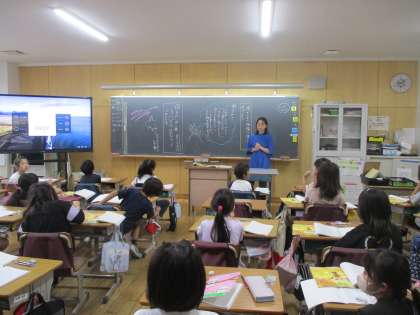 3年生の国語「ワニのおじいさんからのたから物」の授業です。
