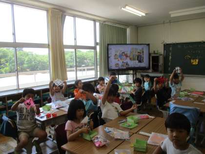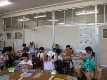 上手にはさみを使って自分だけのオリジナルの飾りができ上がりました!
