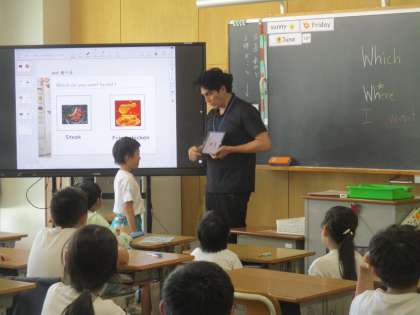 【下】 スペシャリストの英語の先生と、“Which do you want to 〜”で会話を楽しんでいます。