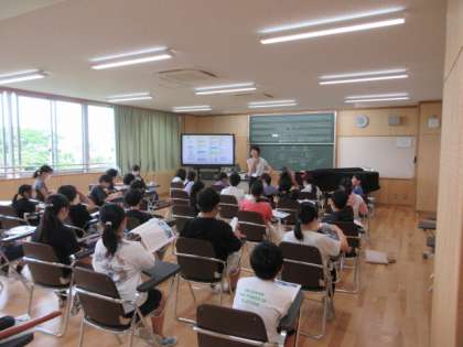 【上】7月4・5日の修学旅行に向けて、しおりの読み合わせをしています。